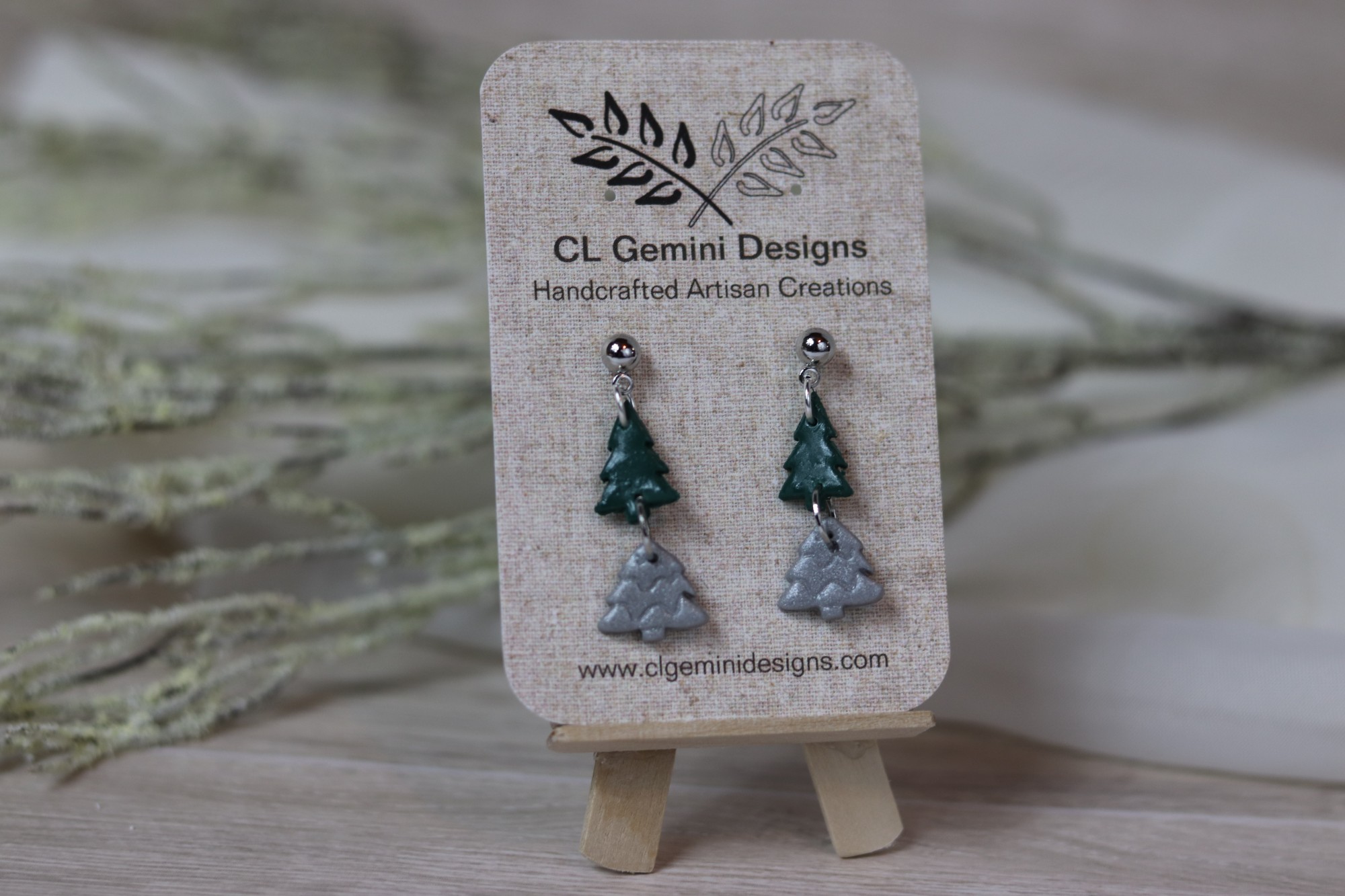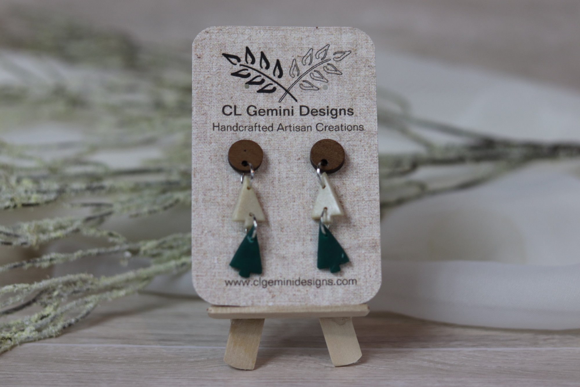 Celebrate the season with these handcrafted layered evergreen dangle earrings, designed with stacked tree shapes that create depth, motion, and visual interest. Each pair features a thoughtfully arranged combination of tones, offering a festive look that feels both playful and refined.