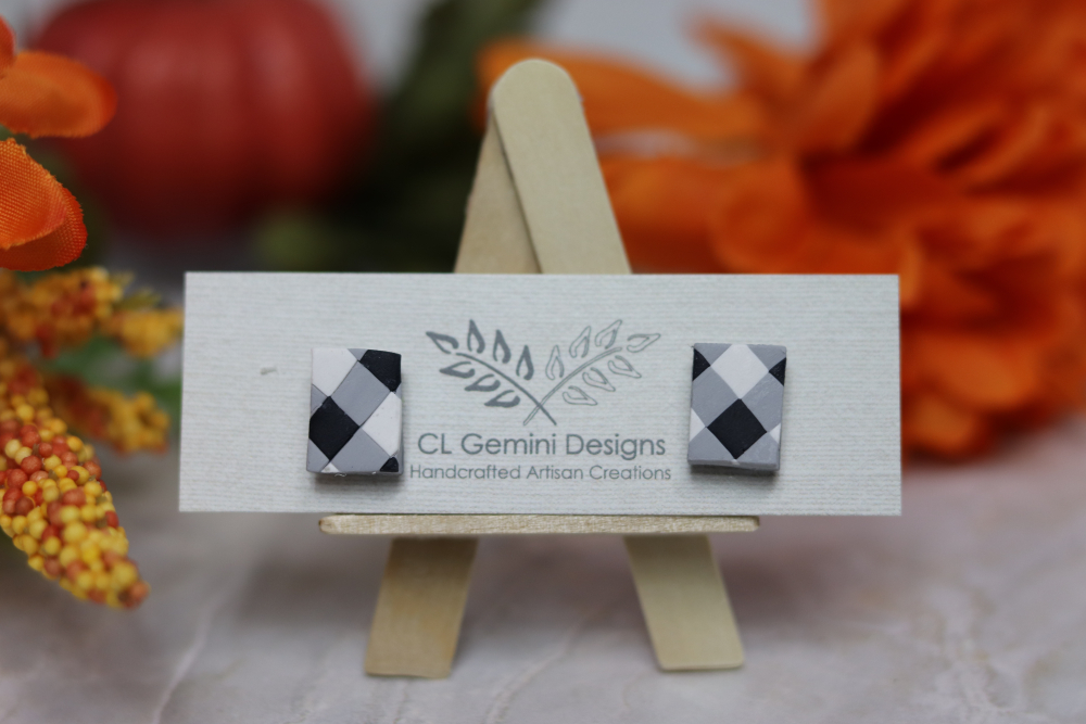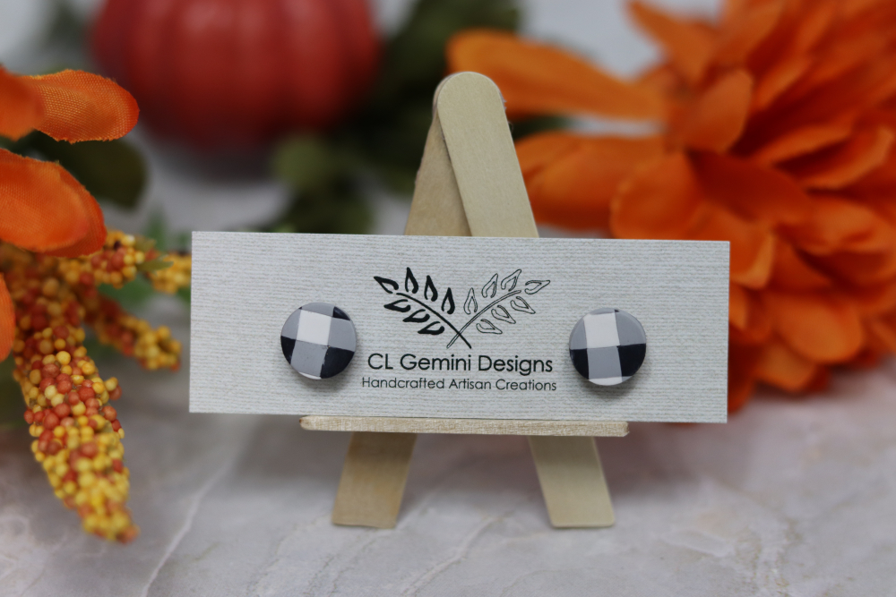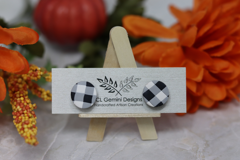 Add a touch of rustic charm to your style with our Buffalo Check Stud Earrings. Featuring the iconic black-and-white plaid pattern, these handmade polymer clay studs capture the cozy, timeless appeal of farmhouse style and fall fashion.