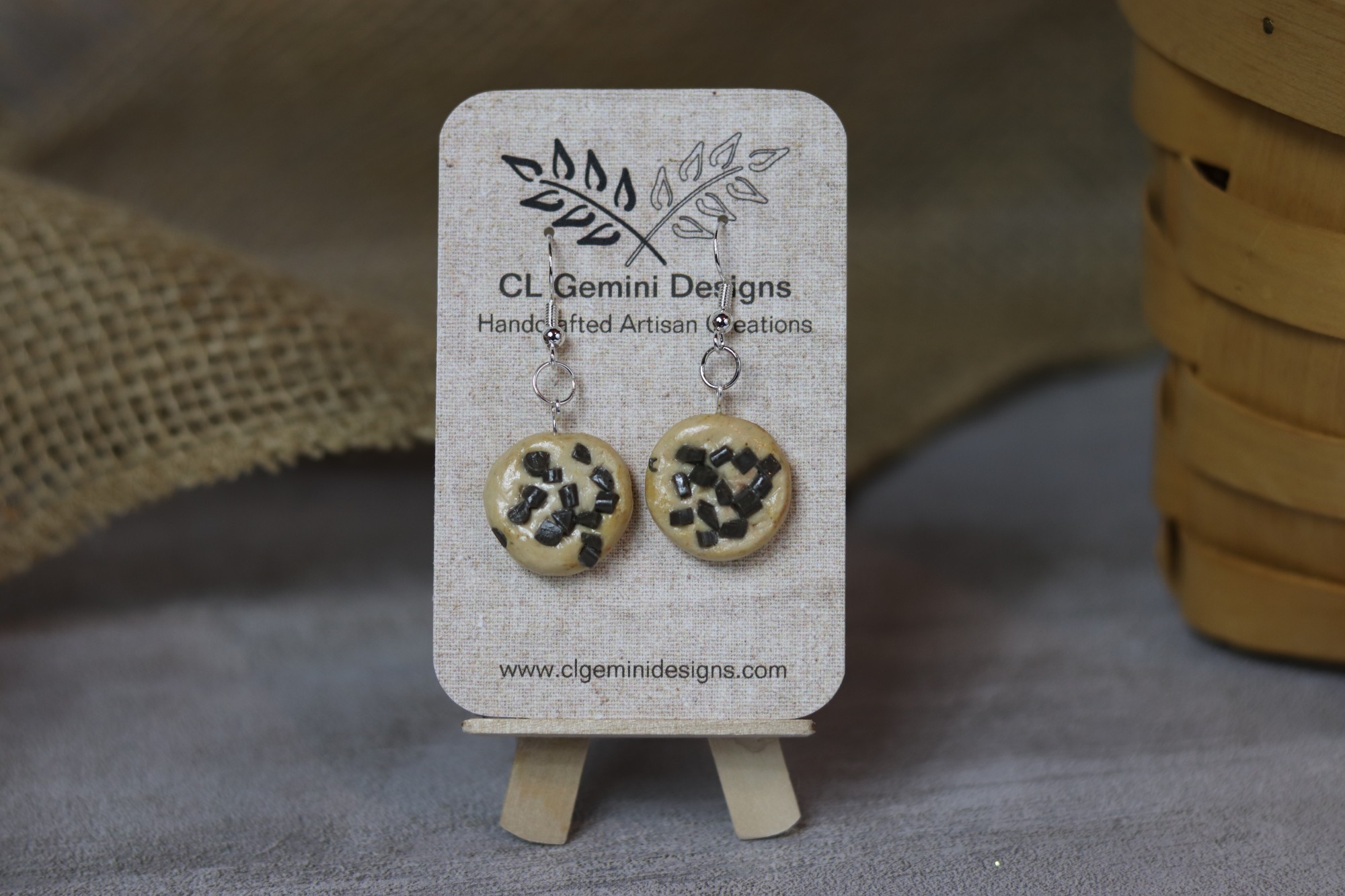 Satisfy your style cravings with these adorable cookie dangle earrings, handcrafted one pair at a time in polymer clay and finished with a protective gloss. Each “cookie” is textured and tinted for a fresh-baked look, then mounted on comfortable ear wires for all-day wear.